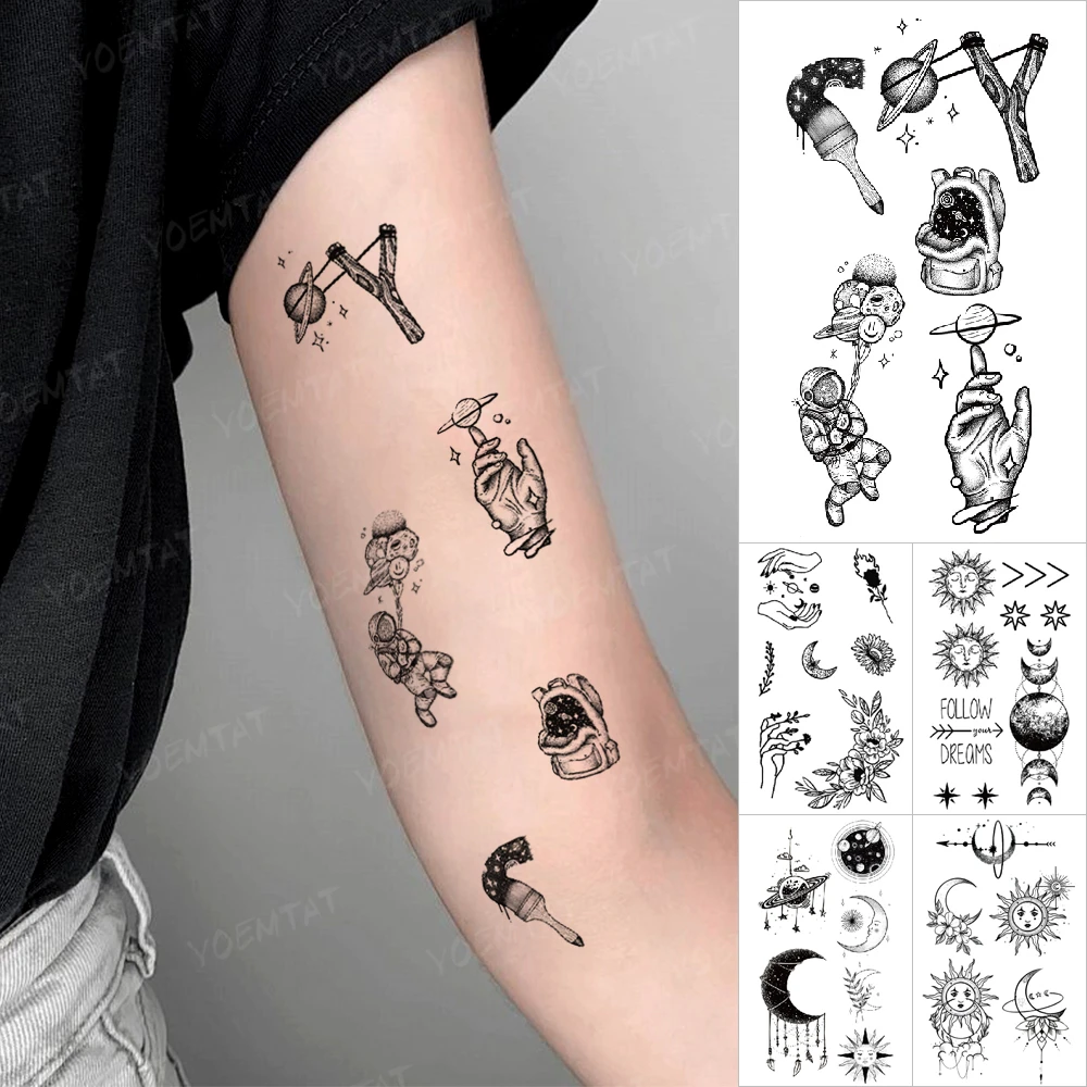 Child Kids Tattoos Astronaut Dream Planet Sun Moon Waterproof Temporary Tattoo Stickers Body Art Men Women Arm Cute Simple Tatoo Temporary Tattoos Aliexpress